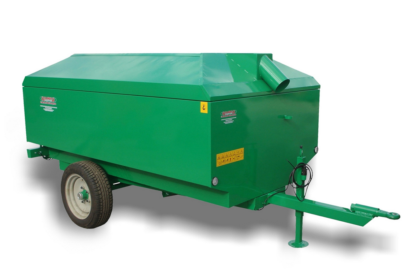 Rimorchio agricolo multiuso adatto sia per la raccolta di frutta in guscio (nocciole, castagne, mandorle, noci, macadamia, olive, caffè etc..) che per il trasporto in genere grazie alla possibilità di togliere il coperchio. E’ dotato di ribaltamento posteriore idraulico ed è costruito con telaio in acciaio. il rimorchio è caratterizzato di un particolare coperchio a forma piramidale smussato su tutti e 4 gli angoli che permette di agevolare il passaggio vicino e sotto alla pianta senza danneggiarla.